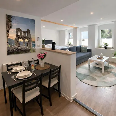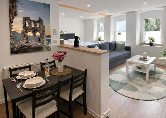 The 42 m^2 Fewo Catlen Apartment Traben-Trarbach features convenient proximity to such city attractions as Steillagen Weingut Conrad-Bartz, situated 6 minutes' stroll away. Wi-Fi and parking are also available at this 1-bedroom apartment.